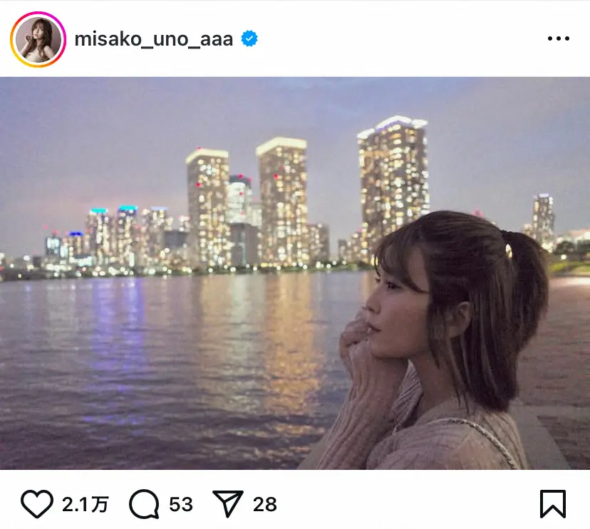 「MVみたい」第1子妊娠中の宇野実彩子 夜景&横顔ショット披露 ファンうっとり「絵になる」「素敵」