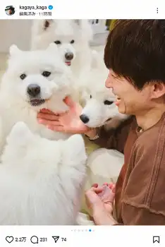 写真が趣味で、芸人のオフショットなどをこれまで撮影。写真集も発表している加賀。この日は「ラヴィット」のハッシュタグを添え、「生放送中にサモエドカフェ行かせてもらいました」と伝えた。