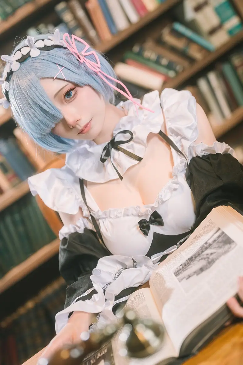 古書を手に、知的な雰囲気を漂わせるレム。メイド服に身を包み、青い瞳でこちらを物語へと引き込む。柔らかな微笑みから視線を落とせば、セクシーな胸元が…。見ていて色んな意味でドキドキが止まらない秀作だ。