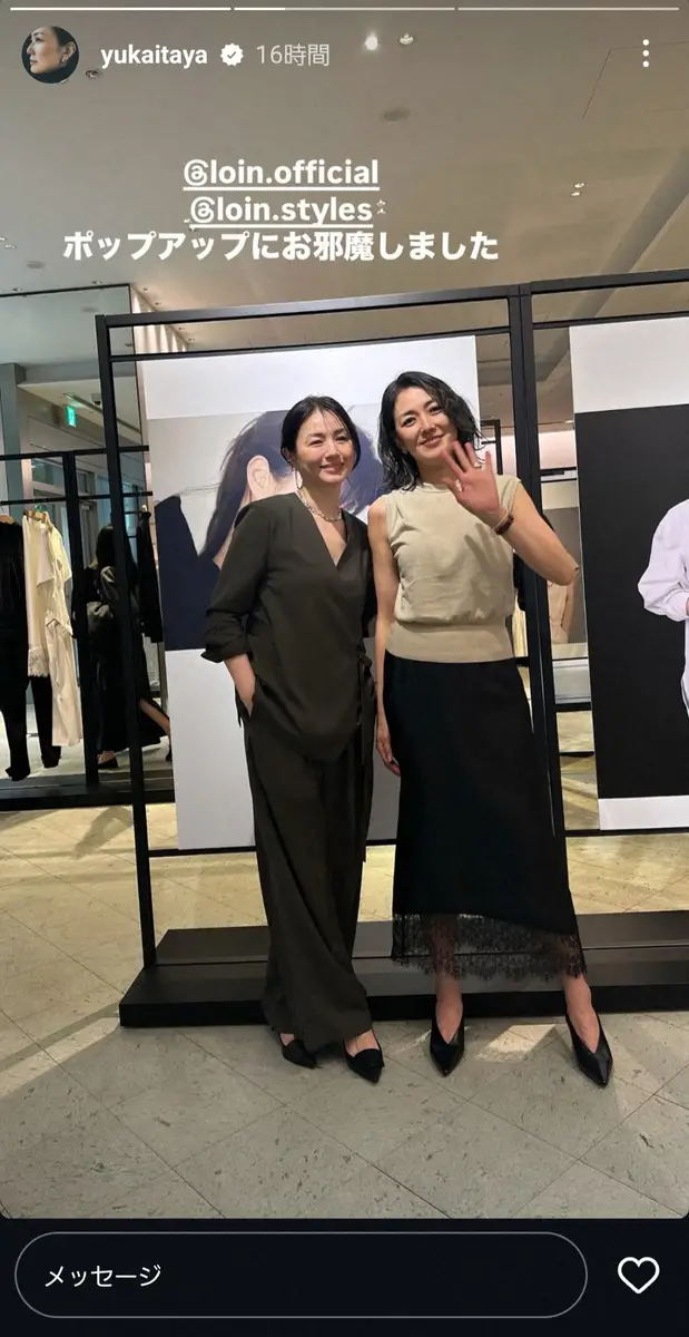 板谷はストーリーズで「@loin.official @loin.styles ポップアップにお邪魔しました」とつづり、女優の井川遥(48)が経営するファッションブランド「loin.(ロワン)」の期間限定開催されているポップアップストアに訪れたことを明かした。