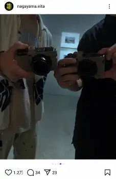 続けて「やはり、アラタさんの言葉ひとつ、ひとつが、入ってくる。 アラタさんは、やはり凄く大きな存在だ。 RICOHさん、来てくださった皆様、ありがとうございました。 抽選に外れてしまった方々、またいつか、アラタさんと写真展やります、、舞台挨拶かな、、また、会いましょう。」とつづり、自身が大好きでやまないと公言している仲良しの俳優・井浦新(50)との2ショットや、カメラを片手で構えた腕筋際立つ姿、井浦と2人で同じ色のカメラカバーをし撮影されたショットなどを披露。