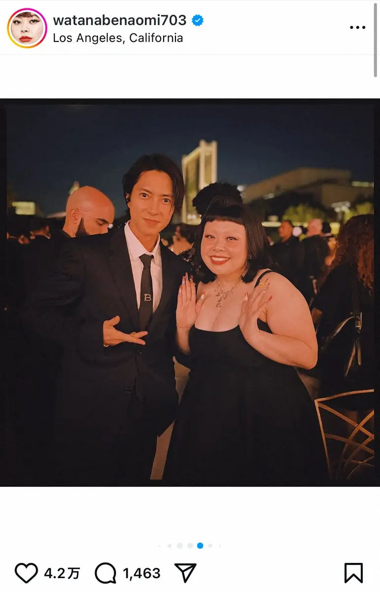 米ロサンゼルスで行われた「Gold Gala」授賞式に参加したことを報告した渡辺。たくさんの参加者との写真を投稿した。