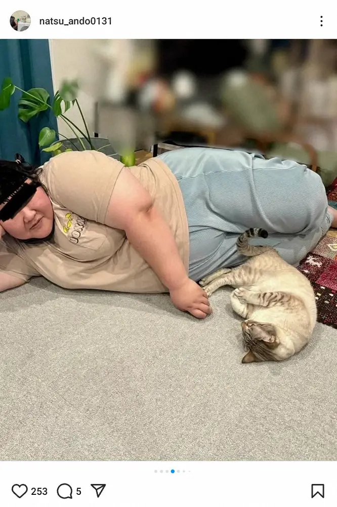 「メイプル超合金」安藤なつのインスタグラム(@natsu_ando0131)より 左から「納言」薄幸、アビシ、やす子 安藤なつ「出会って5分で仲良しに」人気芸人宅での“リラックスショット”に… ギャラリーで見る この記事のフォト 2025年05月16日の画像一覧 もっと見る 2025年05月16日の画像をもっと見る