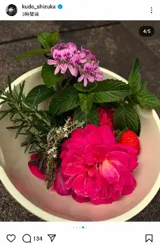 また、庭の美しい花などを摘んでハーブティーにした写真も投稿した。