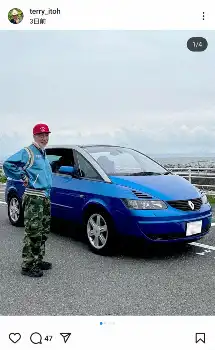 テリーは「ルノーアバンタイム2003年式手に入れました」とつづり、ブルーの車体の車との2ショットなどを投稿。