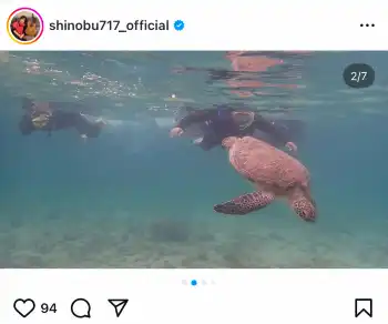 この日、大竹は「今年も又娘の住む奄美大島で海亀と一緒に泳ぐことが出来ました」と、ウミガメとの水中での2ショットや動画をアップ。