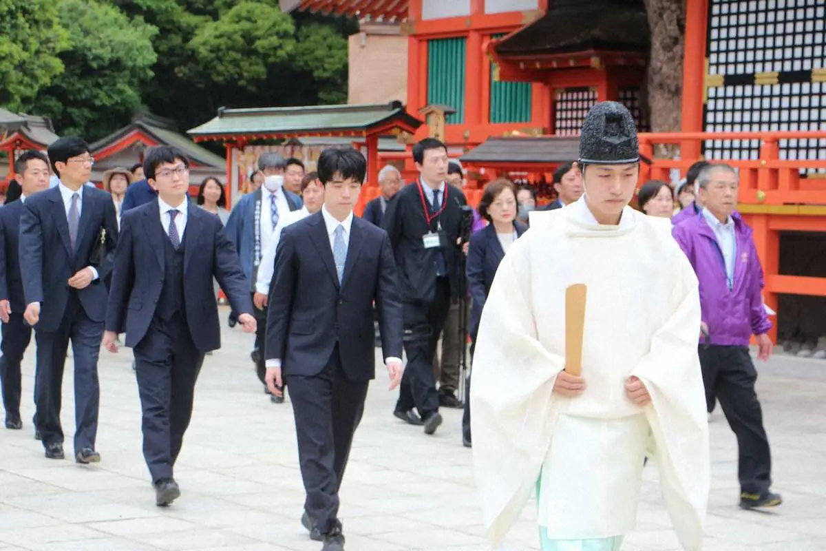 名人戦第4局 3勝の藤井名人「考え抜いて指したい」 大分県宇佐市・宇佐神宮で対局場検分
