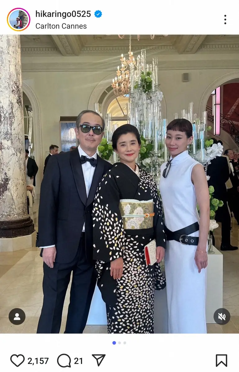 【画像・写真】石田ひかり DJ着付師&大物俳優との3ショット披露! カンヌでの着物姿に仲良し女優も反応「素敵!」