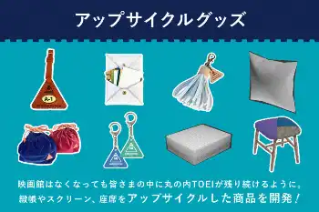 スクリーンや緞帳、座席シートなどをアップサイクル(本来捨てられるはずの製品に新たな価値を与えて再生すること)し、数量限定のメモリアルグッズとして届ける企画。