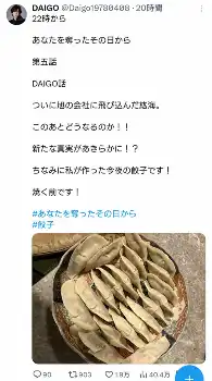 その後、今度はDAIGOが焼く前の餃子の写真を投稿。北川のドラマを宣伝しつつ「ちなみに私が作った今夜の餃子です!焼く前です!」と報告したもの。