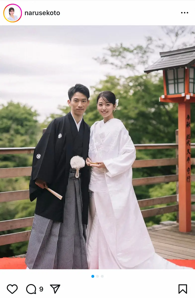 インスタグラムでは紋付袴を着た夫婦の写真を投稿し、「私事で大変恐縮ではございますが、かねてよりお付き合いさせて頂いておりました 騎手の荻野極さんと結婚いたしましたことをご報告させていただきます」と報告。