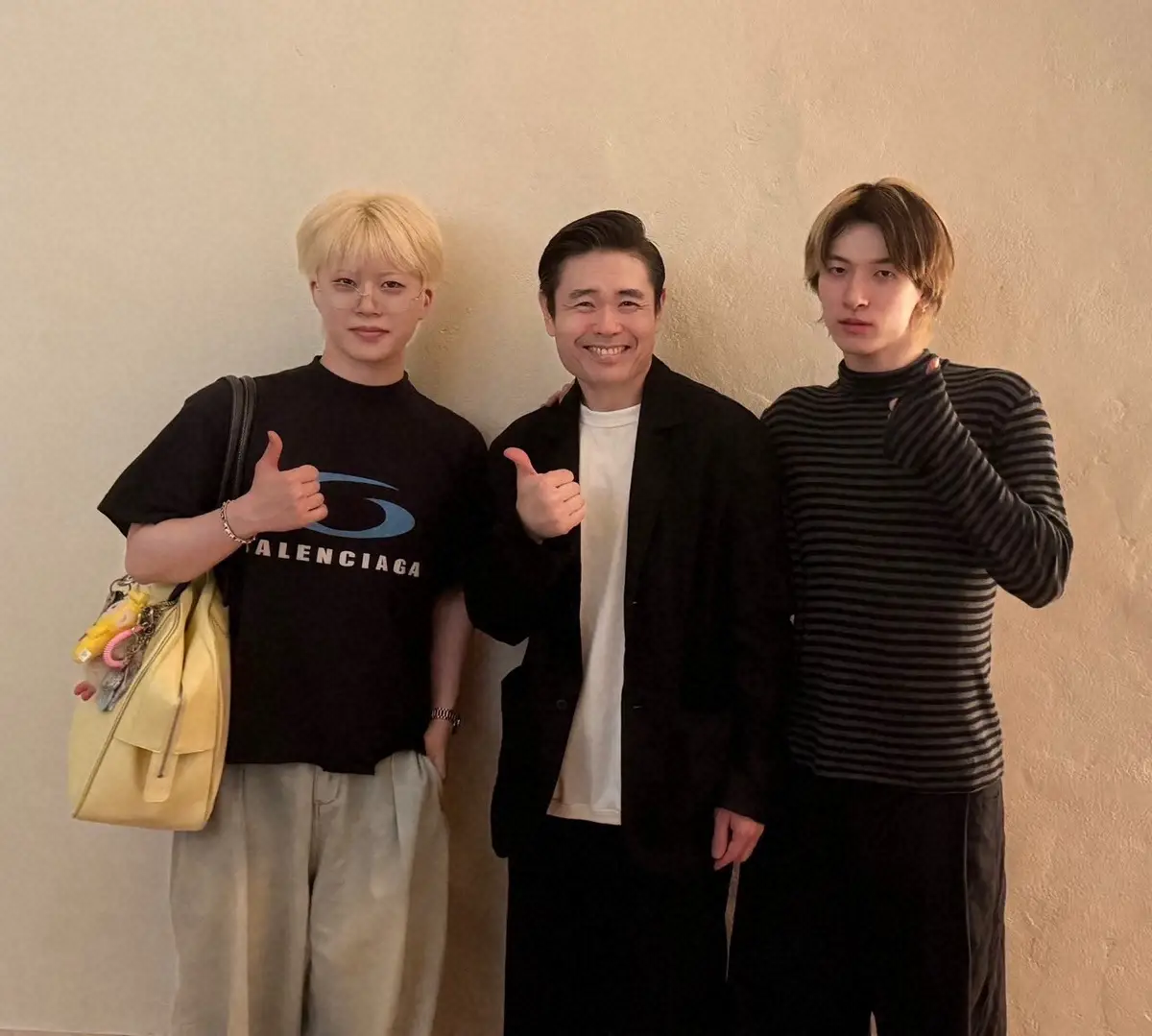 品川は「この間、偶然会った碧海と木全くんとカラオケ行った」と書き出し、JO1の金城碧海、木全翔也との3ショットを公開。