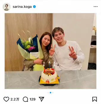 古賀紗理那さん 29歳誕生日に西田有志と仲良し夫婦ショット「家族の健康を守れるように私も健康第一で」