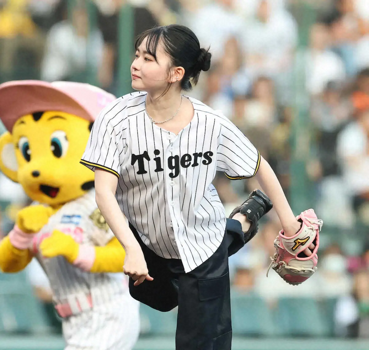 「伝統の一戦」で女優・山田杏奈が始球式 2年連続3回目の登板もノーバンならず「緊張した」