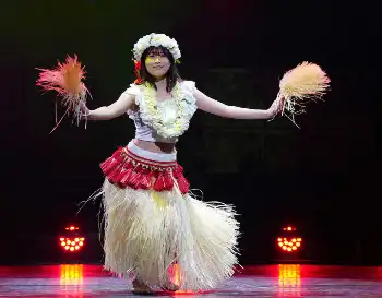 フラダンスを披露する丹生明里(撮影・大城 有生希)