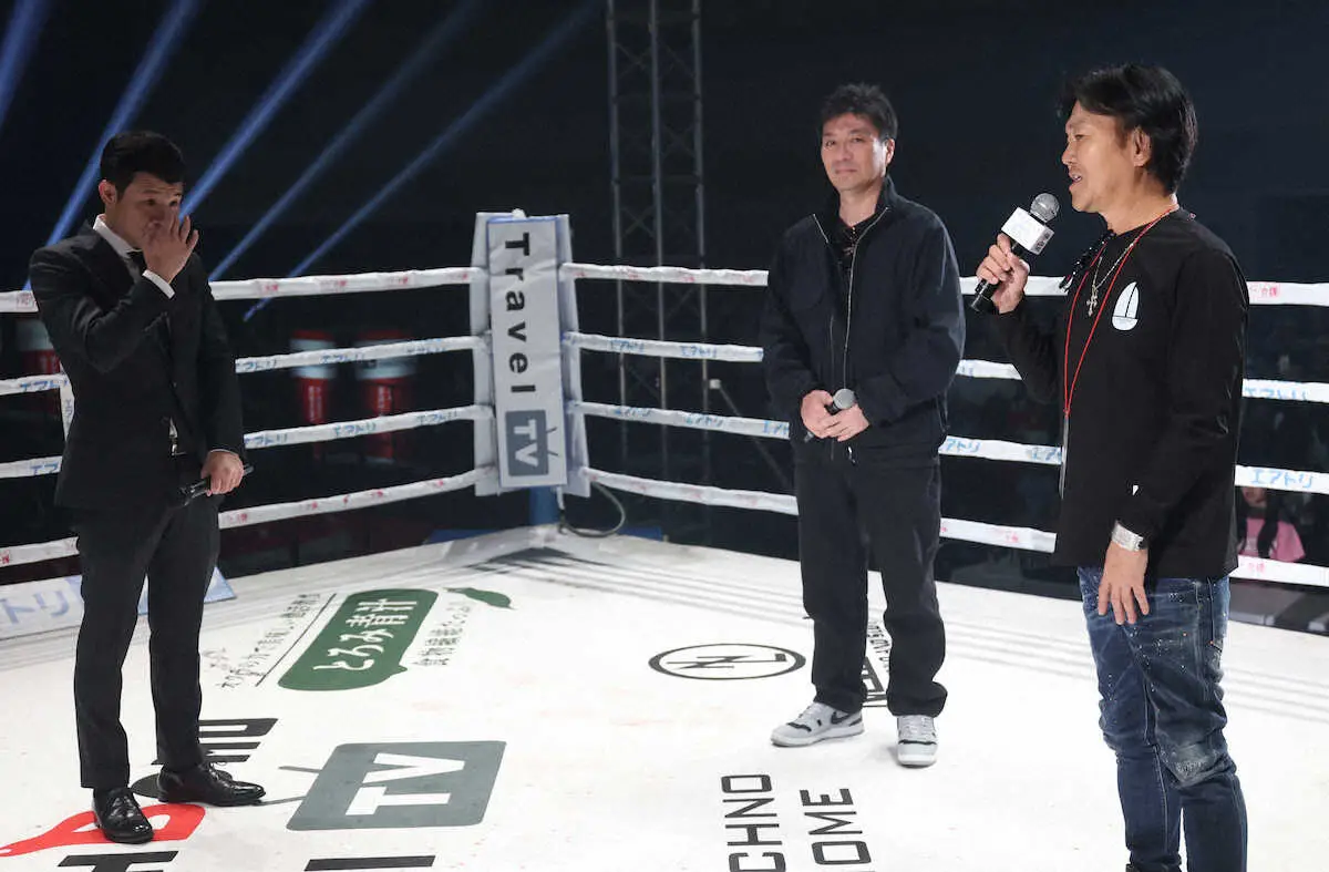 大会をプロデュースする亀田興毅氏が「亀田家がバッシングされた時に助けて…」と涙声で紹介すると、さっそうとリング上へ。