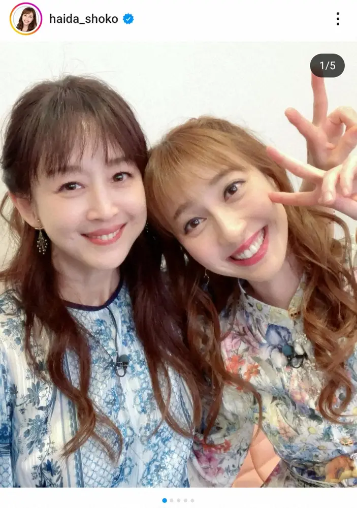 はいだは「Wしょうこ」と書き出し、相田と肩を並べて笑顔でピースサインをする写真を公開。25日に放送されたテレビ朝日「日曜マイチョイス」で共演したロケの様子を振り返った。