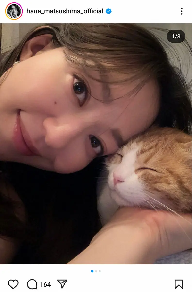 松島花 愛猫とのかわいい2ショット披露 「バタンキュー」通じず「もう死語?」と明かす