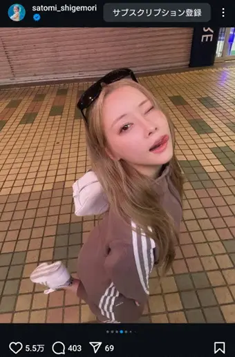 重盛さと美 “可愛すぎる”ブラウンのジャージー・ショット公開に「きゅん」「さっちゃんの舌ペロ大好き」
