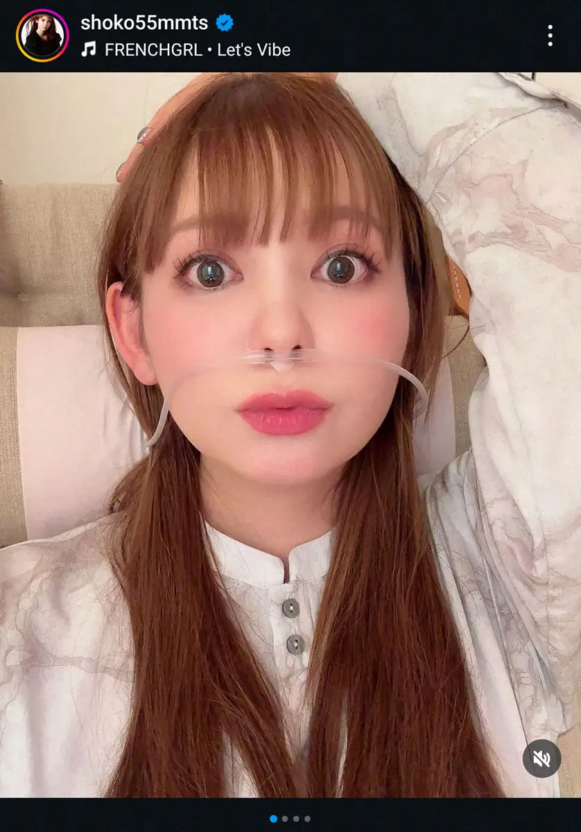 「減塩と、カリウムと、タンパク質 奇麗になりたいし!」とつづり、「水素を鼻から摂取中です」と、鼻にチューブをつけた衝撃の写真も添えた。