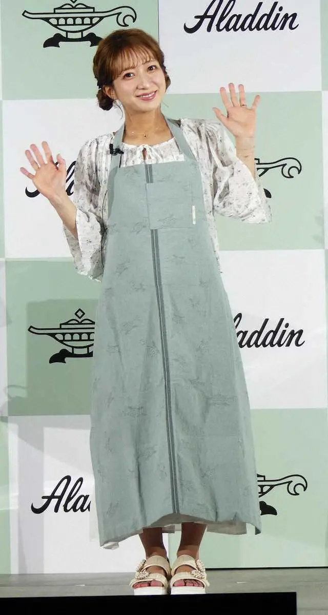 タレントの辻希美(37)が27日、都内で調理器具ブランド「アラジン」の新商品発表会に出席した。第5子妊娠中の辻はブランドイメージの淡い緑色のエプロン姿で登場。妊娠6カ月で少しふっくらとしたおなかをのぞかせた。