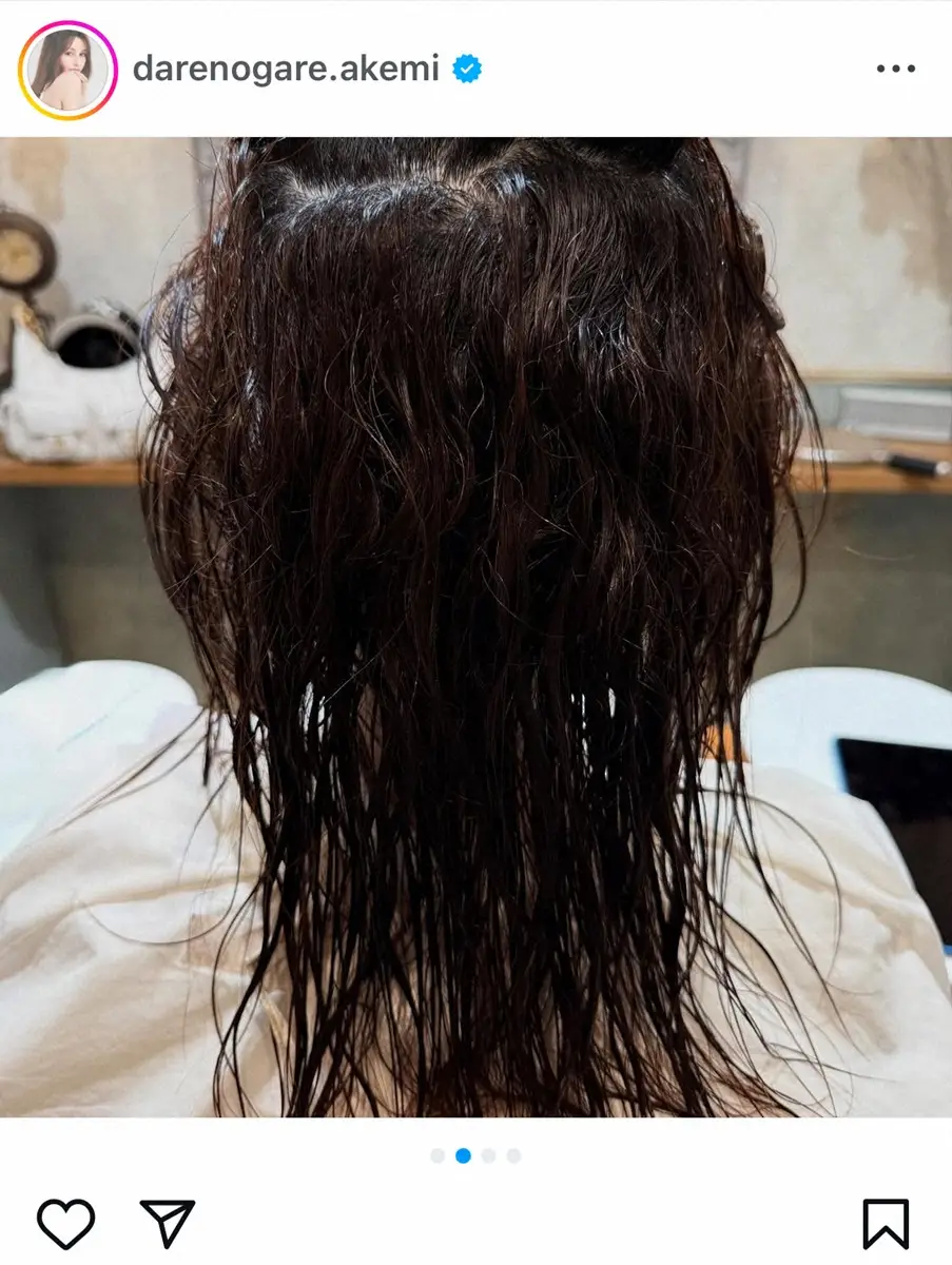 「実は後頭部の一部が凄く癖っ毛で、、、」とつづり、ストレートパーマ施術前の写真を公開した。