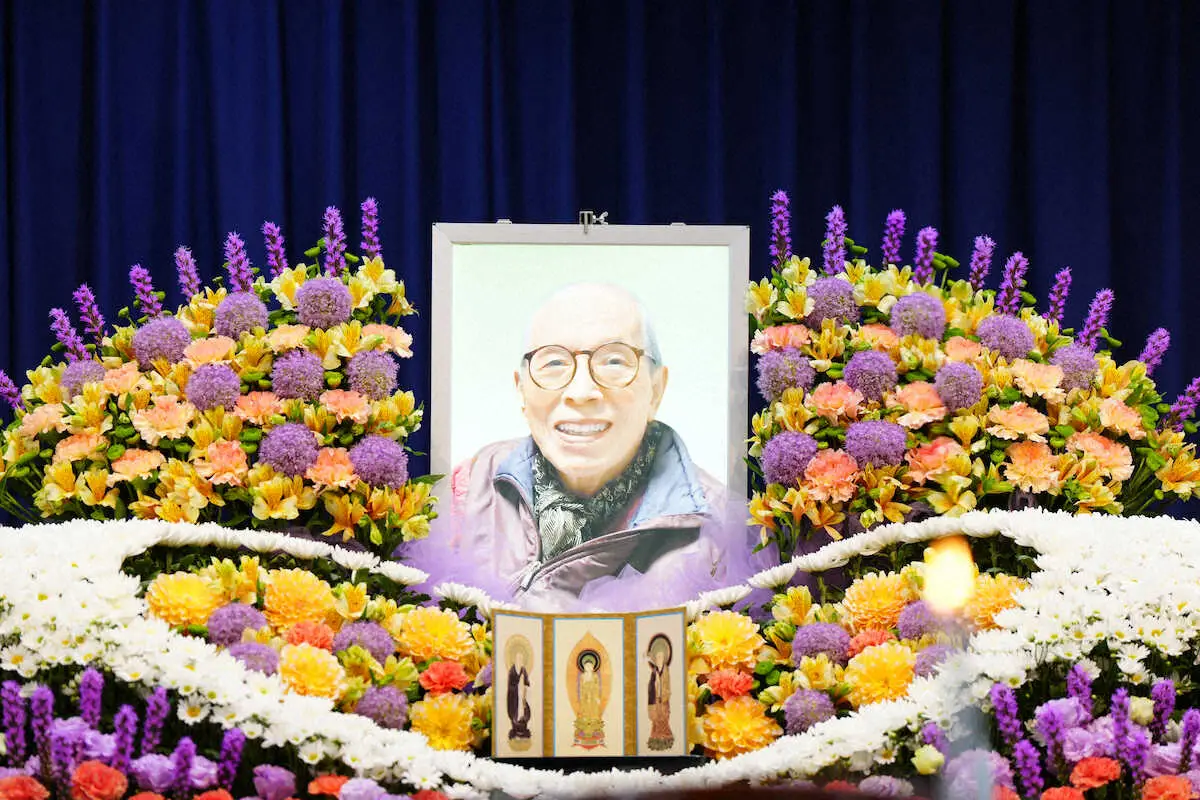 親族や漫才関係者ら約90人が参列。祭壇は白を基調とした花で彩られ、中心には優しくほほ笑むのいるさんの遺影が飾られた。戒名は「弘愉貫光信士(こうゆかんこうしんじ)」。