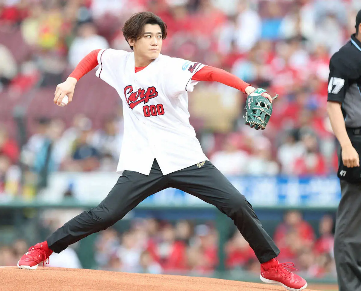 新浜レオンが剛球始球式!116キロの計測にマツダどよめき…騒然「歌うプロ野球選手を目指して」