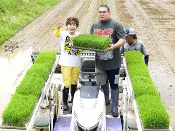 田植えには大相撲の横綱・豊昇龍(26)も3年連続での参加。昨年に小林と「来年は横綱で」と結んでいた約束を見事に実現。豊昇龍は「約束果たしてなかったら今日は合わせる顔がなかった。横綱になってよかった」と笑顔を見せた。2年前は関脇、昨年は大関として参加しており「毎回来るたびに番付が上がって、縁起がいいところ」と十日町の田んぼへの愛着も芽生えている様子だった。