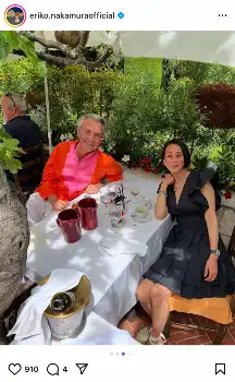 黒のワンピースをまとい、夫と食事を楽しむ1枚を投稿。「大好きなLa colombe d’or での2人ランチ。写真3~7枚目がLa colombe d’orです。夕食は家の庭の小さなテーブルで2人きり。朝は庭のオレンジを絞って飲んだり、食後は温かいそば茶を飲みながらまったり」と夫婦の時間を満喫したことを伝えた。