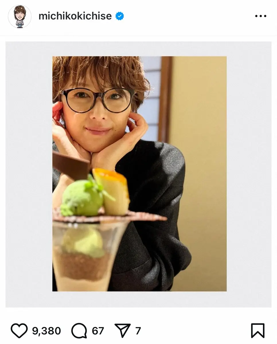 吉瀬美智子 メガネ姿であざとポーズ オフショットが反響「大人可愛い」「反則です」