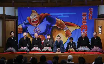 口上では東西4団体の重鎮が祝福した。落語協会前会長の柳亭市馬(63)は得意の美声で相撲甚句を披露。「七代目も大の里のように大きな、大きな芸人になってもらいたいと思います」とエールを送った。
