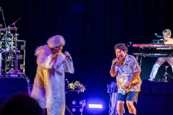 ステージもハワイの自然な魅力を生かした。幻想的な会場に合うようにド派手な演出を封印。爽快な夜風に吹かれながら代表曲「シーズン・イン・ザ・サン」などを披露し、現地の歌手やフラダンサーともコラボした。この日一番の驚きの声が上がったのは、7月発売のアルバムに参加している広瀬香美(59)の出演。互いの代表曲をまぜたタイトルの曲「ロマンス・イン・ザ・サン」を、広瀬が冬の女王らしく毛皮のロングコート、前田がアロハシャツ姿で持ち味のパワフルボイスでデュエットした。