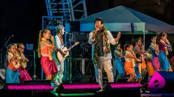 会場はダイヤモンドヘッドを見渡せる野外音楽堂「トム・モファット・ワイキキ・シェル」。ワイキキビーチから徒歩圏内にある絶好のロケーションだ。夕暮れ時の午後6時半に全員がおそろいの白のジャケットとパンツ姿で登場。現地のフラダンサーから祝福のレイを首にかけられると、前田は「みんなでTUBEの40歳の誕生日を祝いたい」と笑みを浮かべた。その後はファンの誕生日を祝うために作った曲「Happy Birthday」を初めてTUBEバージョンで歌った。