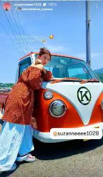スザンヌは地元・熊本で旅館経営をしており、軽トラにも旅館名の「KAWACHI BASE―龍栄荘―」と書かれている。ストーリーズでも愛車によりかかる姿で「やっぱりかわいい」と記している。