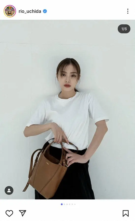 「撮影の日のシンプルコーデ」とつづり、オフショットを公開した内田。Chloeのトートバッグが映えるスタイルを披露した。