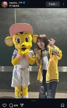 「阪神-オリックス戦で乾杯プレゼンターやらせていただきました」と報告し、甲子園のバックネット裏で観戦している写真などをアップ。