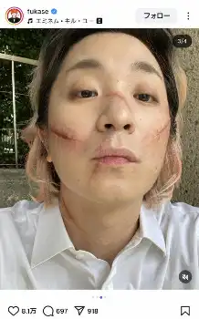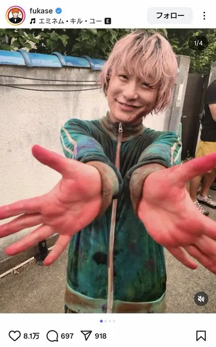 4人組バンド「SEKAI NO OWARI」ボーカルFukase(39)が9日までに、自身のインスタグラムを更新。出演映画のオフショットを披露した。