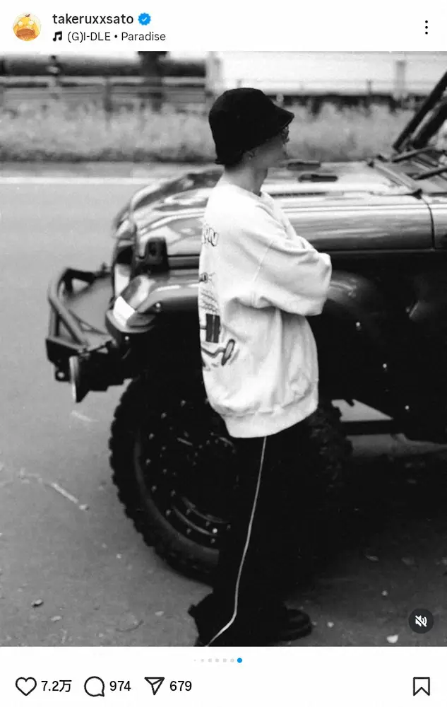 【画像・写真】「え、健さんの愛車?」佐藤健の“ドライブショット”にファン興奮「センス良すぎ」「車デカいですわ」