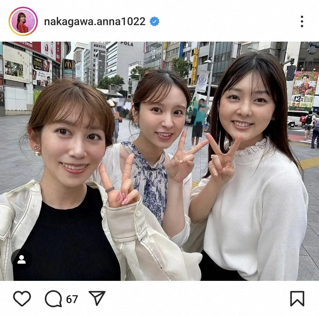 中川安奈 「NHKを卒業して以来の渋谷」同じ慶大卒の美人アナと仲良し3ショット「みんなかわいい」