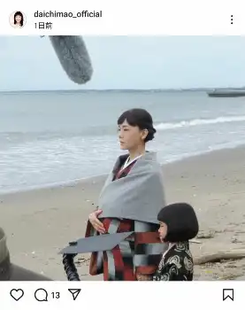 また、髪とまとめてふっくらしたお腹の写真には「昭和17年 夫が出征し 太平洋戦争が激化する中、一家の大黒柱として懸命に働き続けていました そんな中、ショックを受ける出来事が…この、海でのシーンは、どうしても入れたいと思ったエピソードでした お腹にはミチコが… 身重のアヤコ 29歳……(^_^;)」とした。