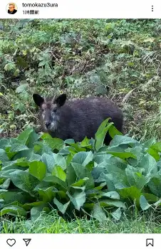 この日は「陶芸小屋の所にイノシシかと思いきやなんとニホンカモシカ現る!」とつづり、ニホンカモシカの写真を投稿。