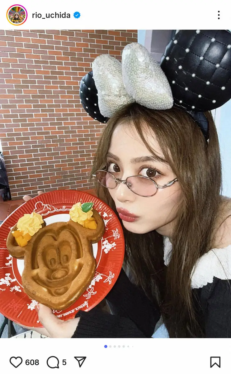 ミニーちゃんの黒いクールなカチューシャにサングラスをかけ、ミッキーのワッフルを持った写真を披露した内田。「最初こんなにキメキメでDisney行ったのに1発目で乗ったスプラッシュマウンテンでびっしょびしょになって(4枚目)」とびしょ濡れになったことを報告。カッパ姿で髪まで濡れた写真も公開し、「メイクも髪もボロボロになったけど最高に楽しい一日だった」と振り返った。