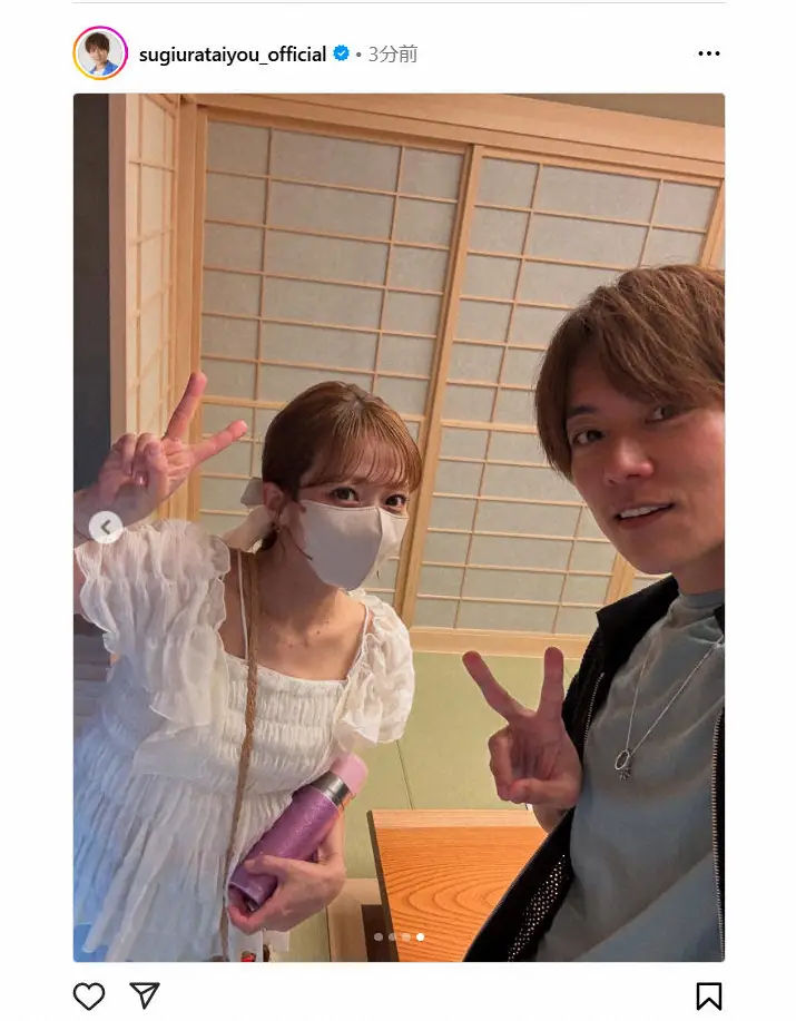 俳優の杉浦太陽(44)が12日、自身のインスタグラムを更新。第5子妊娠中の妻でタレントの辻希美(37)との「うどん店デート」の様子を公開した。