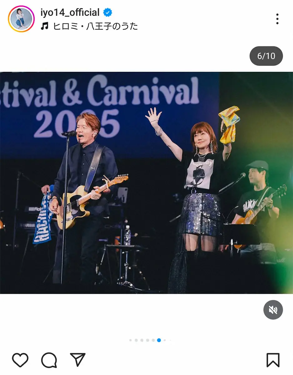 歌手の松本伊代(59)が15日、自身のインスタグラムを更新。14日に東京・八王子市のエスフォルタアリーナ八王子で行われたフェス「八王子魂2025」で、夫のタレントのヒロミ(60)と共演したことを報告した。