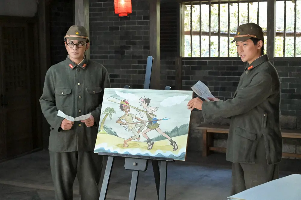 柳井嵩(北村匠海)と辛島健太郎(高橋文哉)が仕上げた紙芝居「双子の島」は、八木信之介(妻夫木聡)の助け舟により無事、審査に合格。披露の日。重々しい雰囲気の中で始まったものの、次第に村人たちから笑いと拍手が起こる。泣かすつもりの内容に、何故笑うのかと首をかしげる嵩たち。意図とは違う伝わり方をしたものの、上官に評価された嵩は夢中で絵を描く日々を過ごし…。