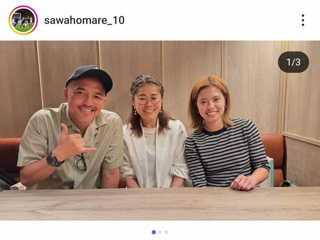 サッカー元女子日本代表のエースで、11年のW杯優勝メンバーの澤穂希さん(46)が16日、自身のインスタグラムを更新。豪華スリーショットを披露した。