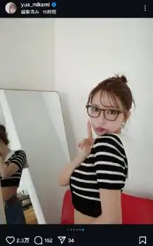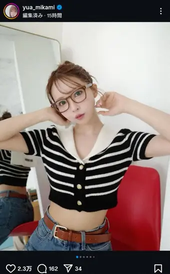 SKE48の元メンバーでタレントの三上悠亜(31)が16日までに自身のインスタグラムを更新。“腹出し”眼鏡ショットを披露した。