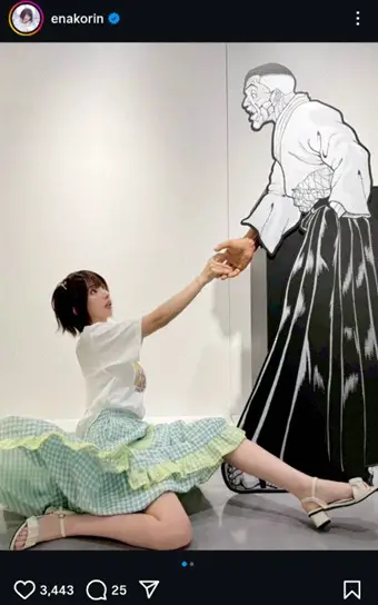 人気コスプレイヤーえなこが16日までに自身のインスタグラムを更新。大ファンの人気漫画作品「刃牙」シリーズに登場する渋川剛気先生との“触れ合い”ショットを披露した。