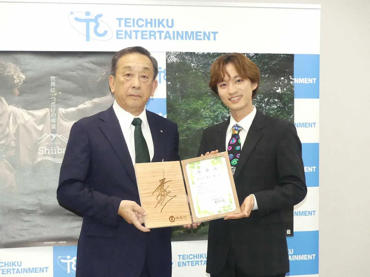 椎葉村の観光大使に任命され、人生初めての名刺を手にして笑顔をみせるた青山新 Photo by スポニチ 青山新 人生初名刺は木梨憲武へ!! 宮崎県椎葉村の観光大使任命式 ギャラリーで見る この記事のフォト 2025年06月17日の画像一覧 もっと見る 2025年06月17日の画像をもっと見る